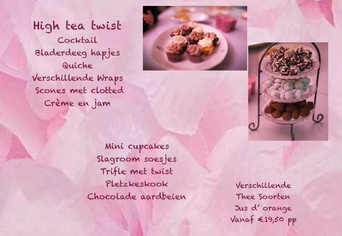 High tea vers voor u gemaakt voor elke gelegenheid. Of het nu is voor een feestje of een gezellig samen zijn. Alles is leuker en voor al lekker met een High tea. Dit kan inclusief servies en ingedekte tafel bij u thuis worden geleverd. Ook maken wij speciale high tea helemaal op kinderen afgestemd.